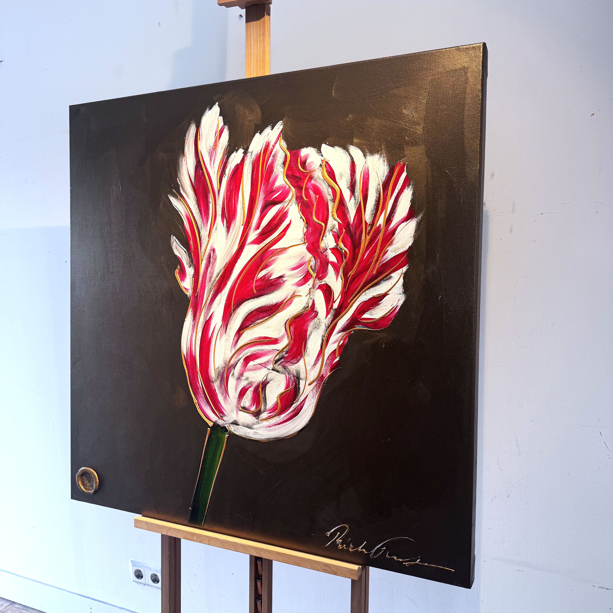 • Painting  - 100x100 cm - Rick Triest - Tulpenmanie -Bronze paint -  Papegaaien Tulp #9