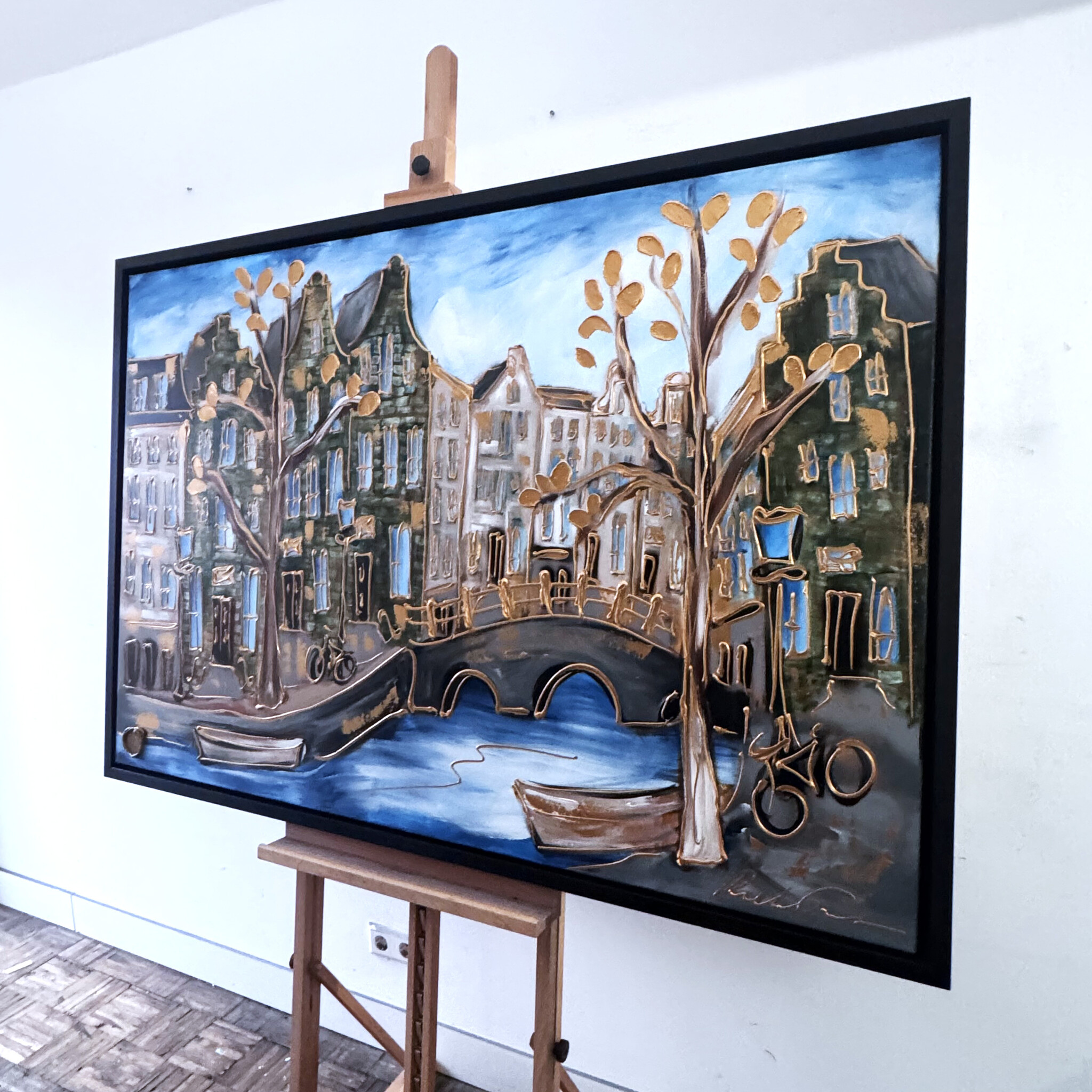 • Painting- 100x150cm - Rick Triest - Amsterdam Herengracht -Blue & Gold #292