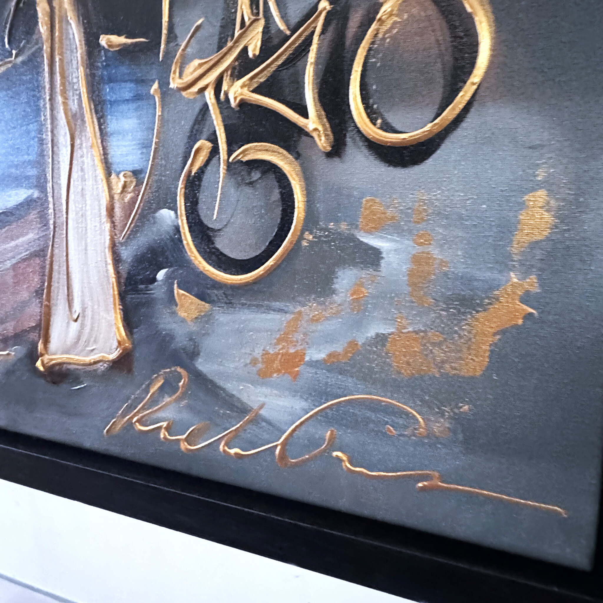 Painting by Rick Triest built up in several layers with a recognizable signature of the artist.