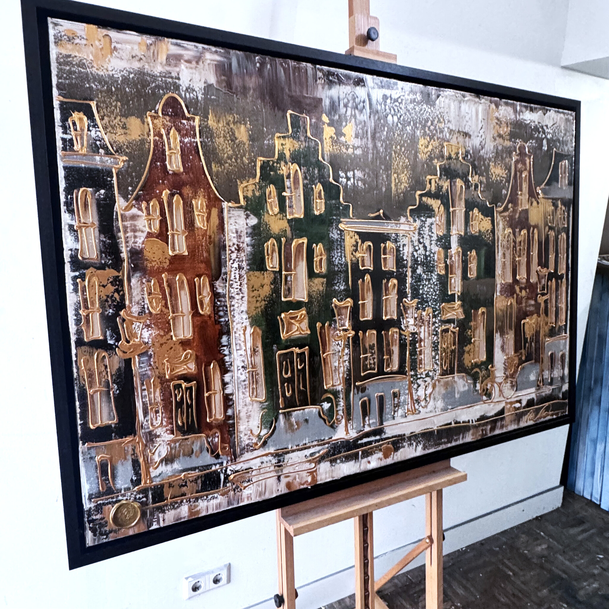 • Painting- 100x150cm - Rick Triest - Amsterdam LUXURY style - grachten gevels in omber & Gold #20