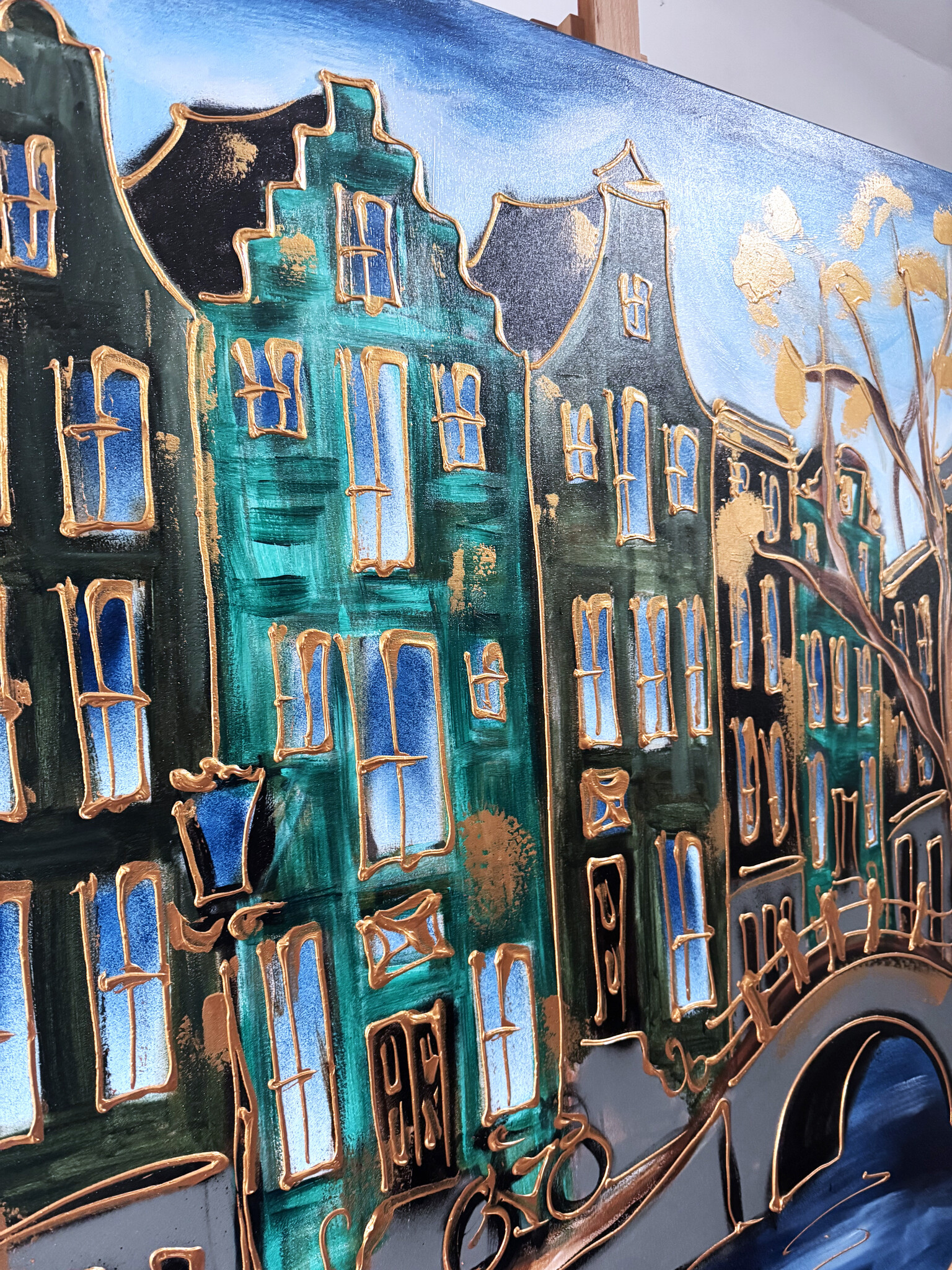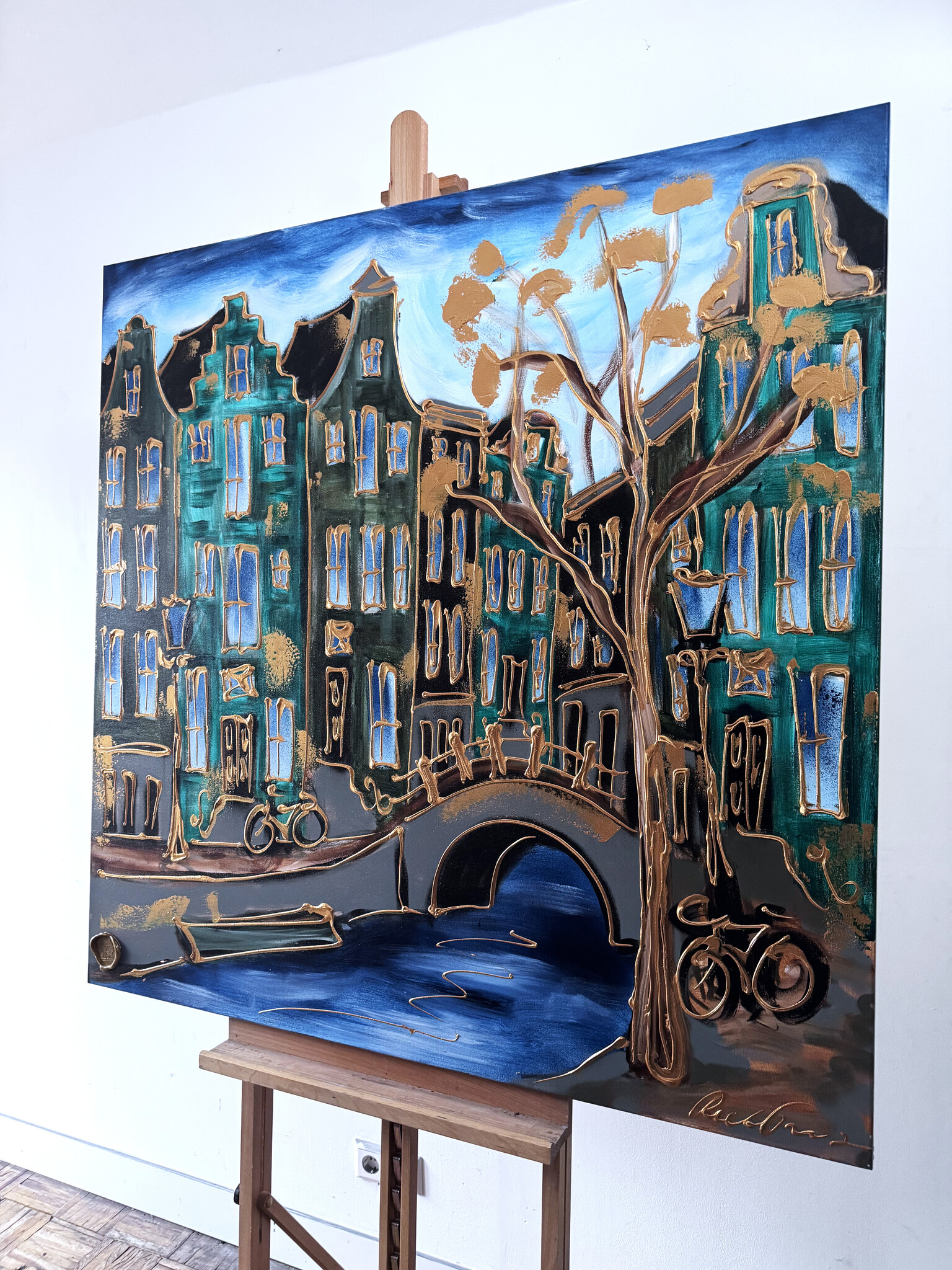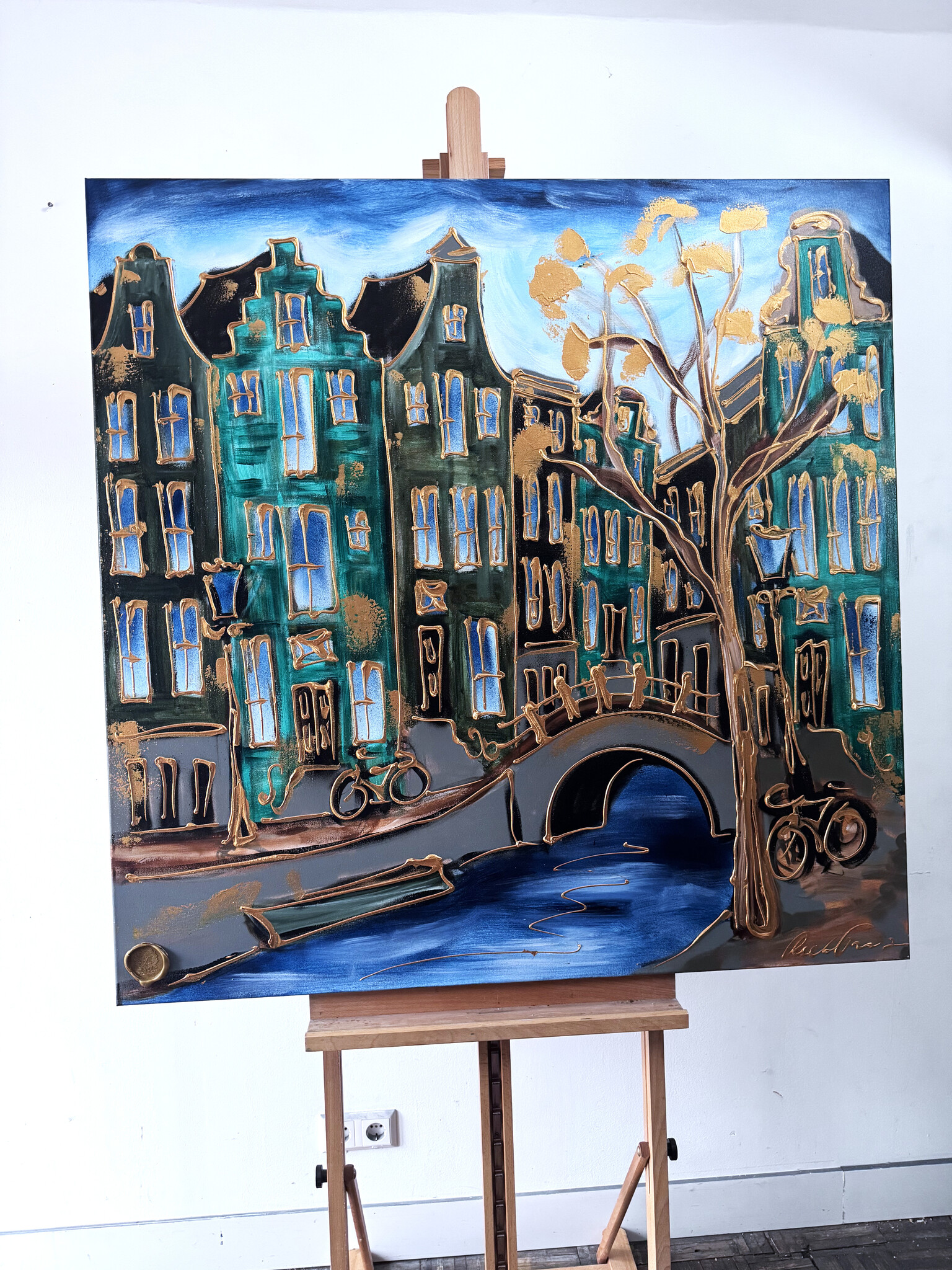 Painting- 120x120 cm - Amsterdam Herengracht -blue and gold #1