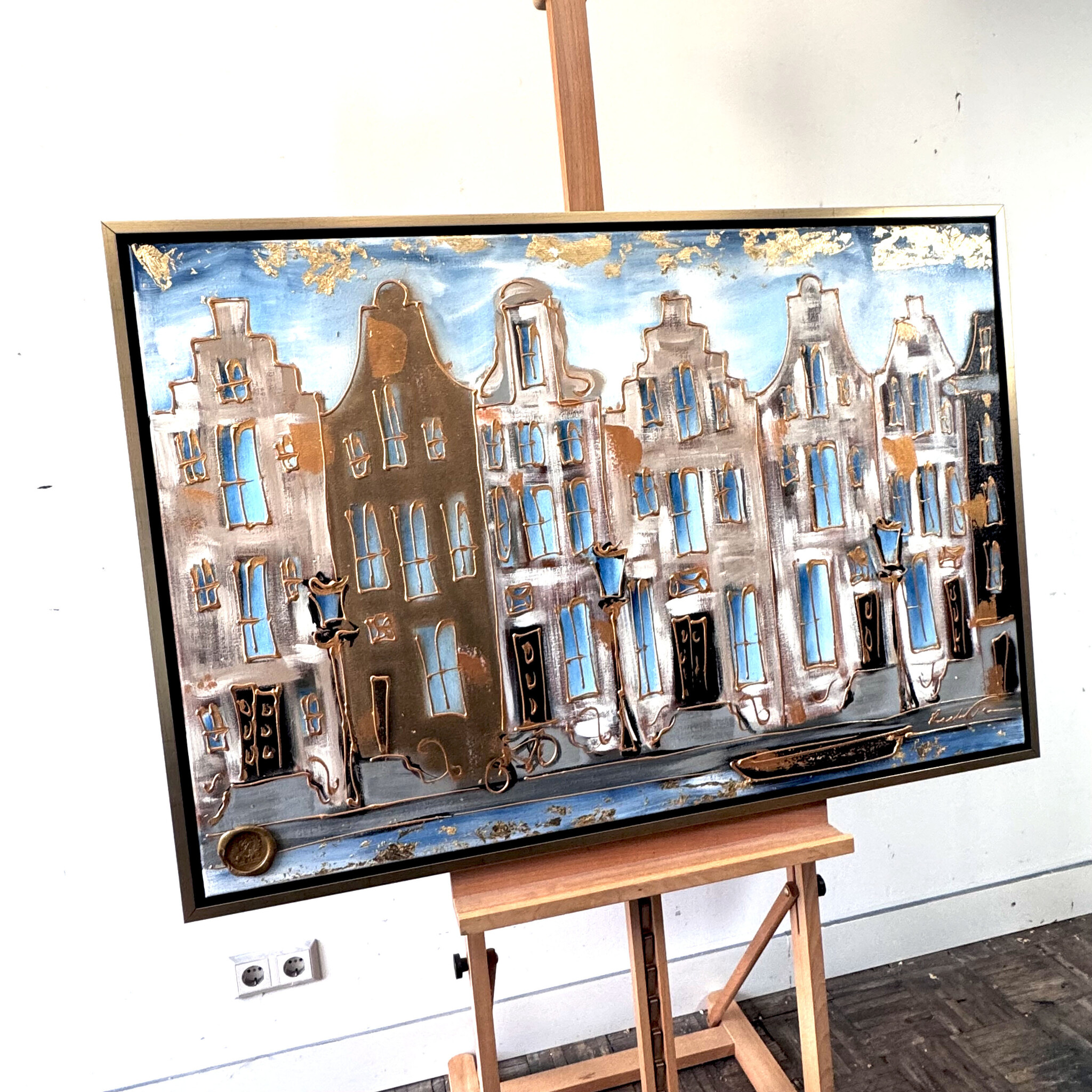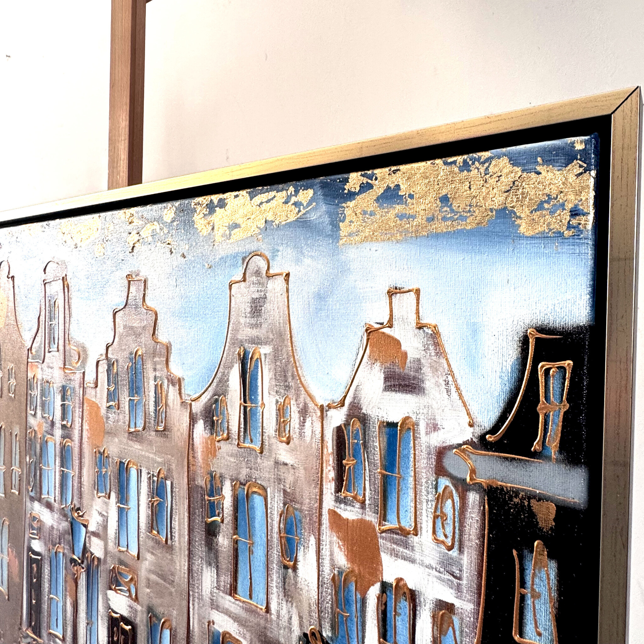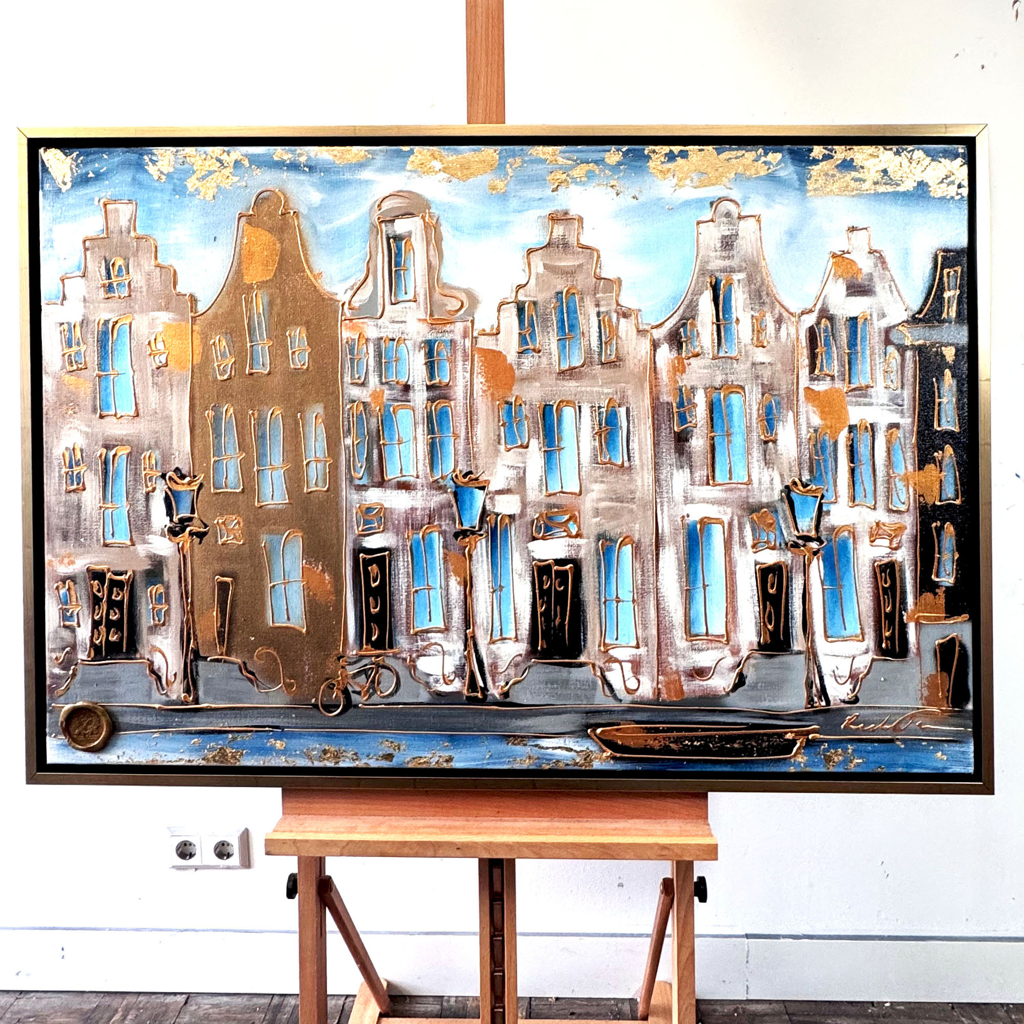 Painting- 80x120 cm - Amsterdam Prinsengracht - Blue & Gold #15