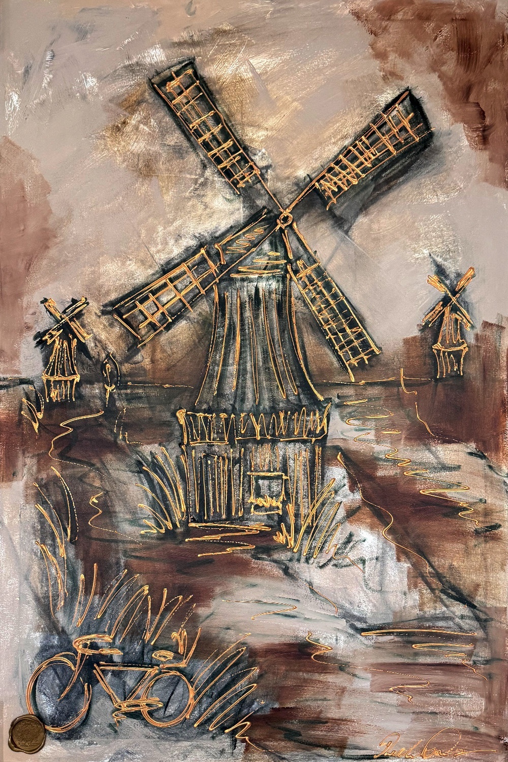Artist Note: My works in the Amsterdam series are made in several layers of acrylic paint, inspired by Rembrandt's glazing technique. Also visible is the frottis technique of the dry brush in combination with oil pastels from Sennelier (known from Picasso) purchased in Paris. The free drawing style, which I create with charcoal, is also very characteristic. Each layer of the work is exposed through these mixed techniques.