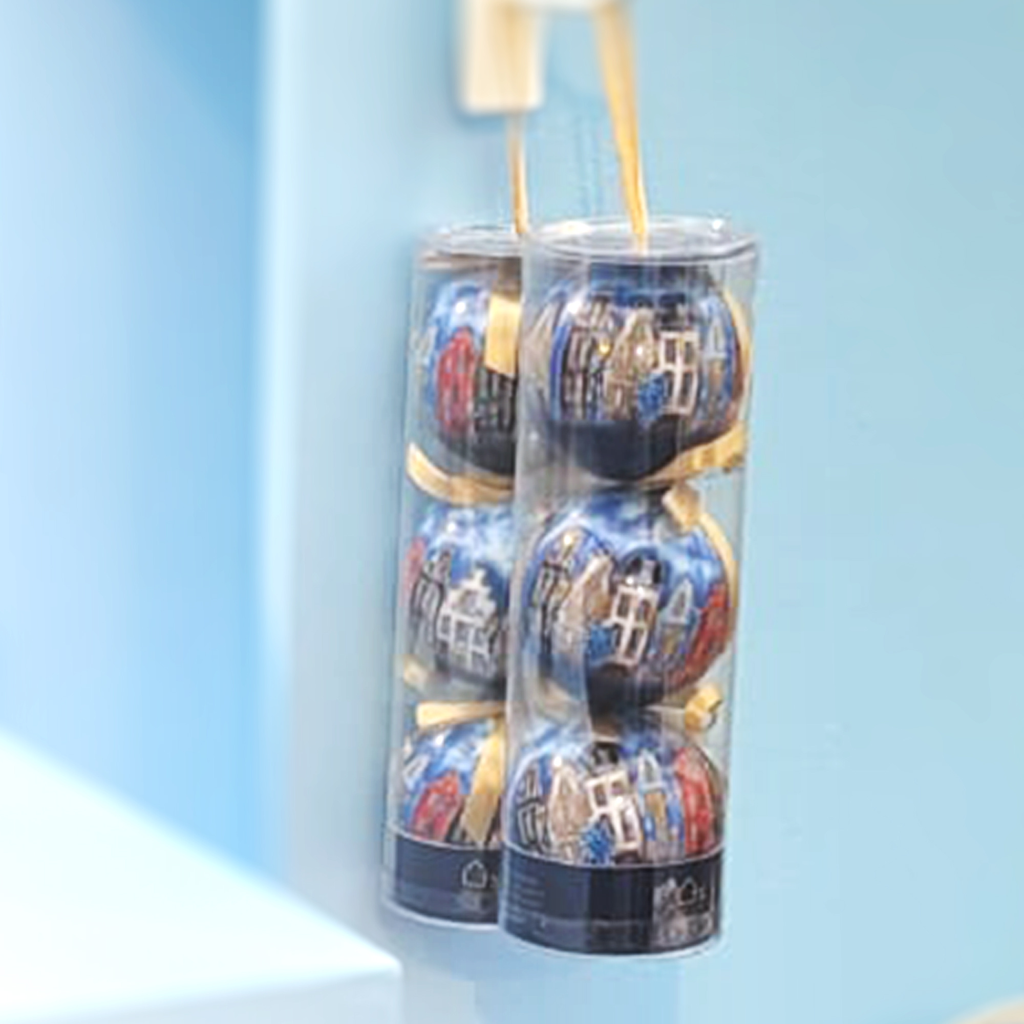Geef een waardevol kerstcadeau van de Designed by Rick Triest serie van TS Collection aan je geliefden. Deze unieke kerstbal toont een betoverende print van de iconische Amsterdamse grachtenpanden. Zo krijgt elke kerstboom een elegante en eigentijdse uitstraling.