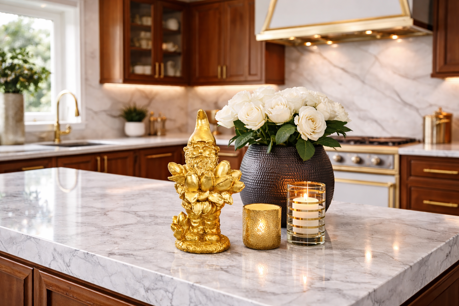 Designed by Rick Triest - Kabouters & Bosdieren -Figuur Carolus goud D15x11 H30