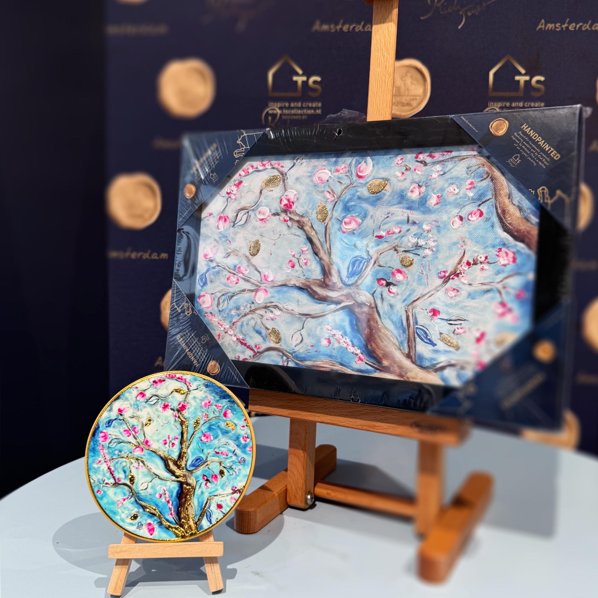 Schilderij Blossom blue D30x20 H3 -handpainted replica