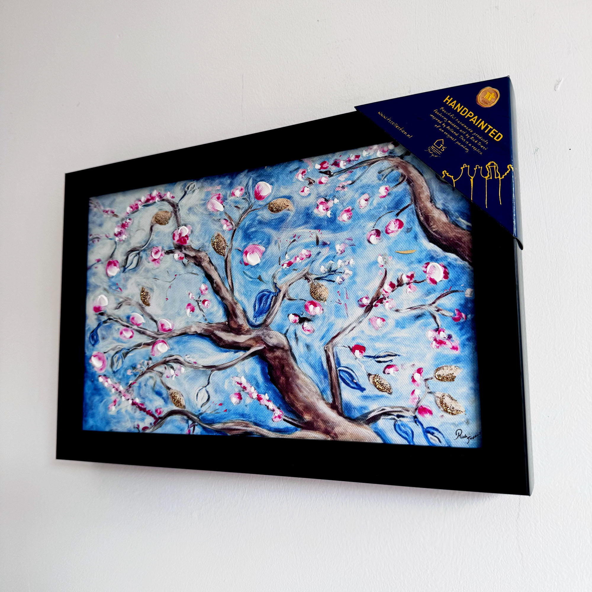 Met dit schilderij haal je echte kunst in huis van een echte Nederlandse kunstenaar. Dit schilderij is van de Designed by Rick Triest serie van TS Collection. Om de replica zit een stevige kunststof lijst met een zwarte houtlook. Het schilderij is een replica van de beroemde Blossom Blue serie schilderijen van Rick Triest. Het Blossom Blue schilderij zet mensen inspireert. Voor dit kunstwerk heeft hij technieken gebruikt uit de Gouden Eeuw als inspiratiebron.