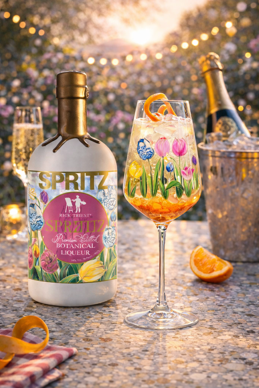 Rick Triest’s Tulip spritz is een originele en feestelijk zomerse cocktail. De likeur is nauw samengesteld van handgemaakte distillaten en extracten. De Botanische tonen in combinatie met het zoete en kleurrijke van deze uniek Hollandse smaaksensatie zijn goed te combineren met sinaasappel of munt. Maak je eigen tulp spritz met sodawater en cava of champagne.