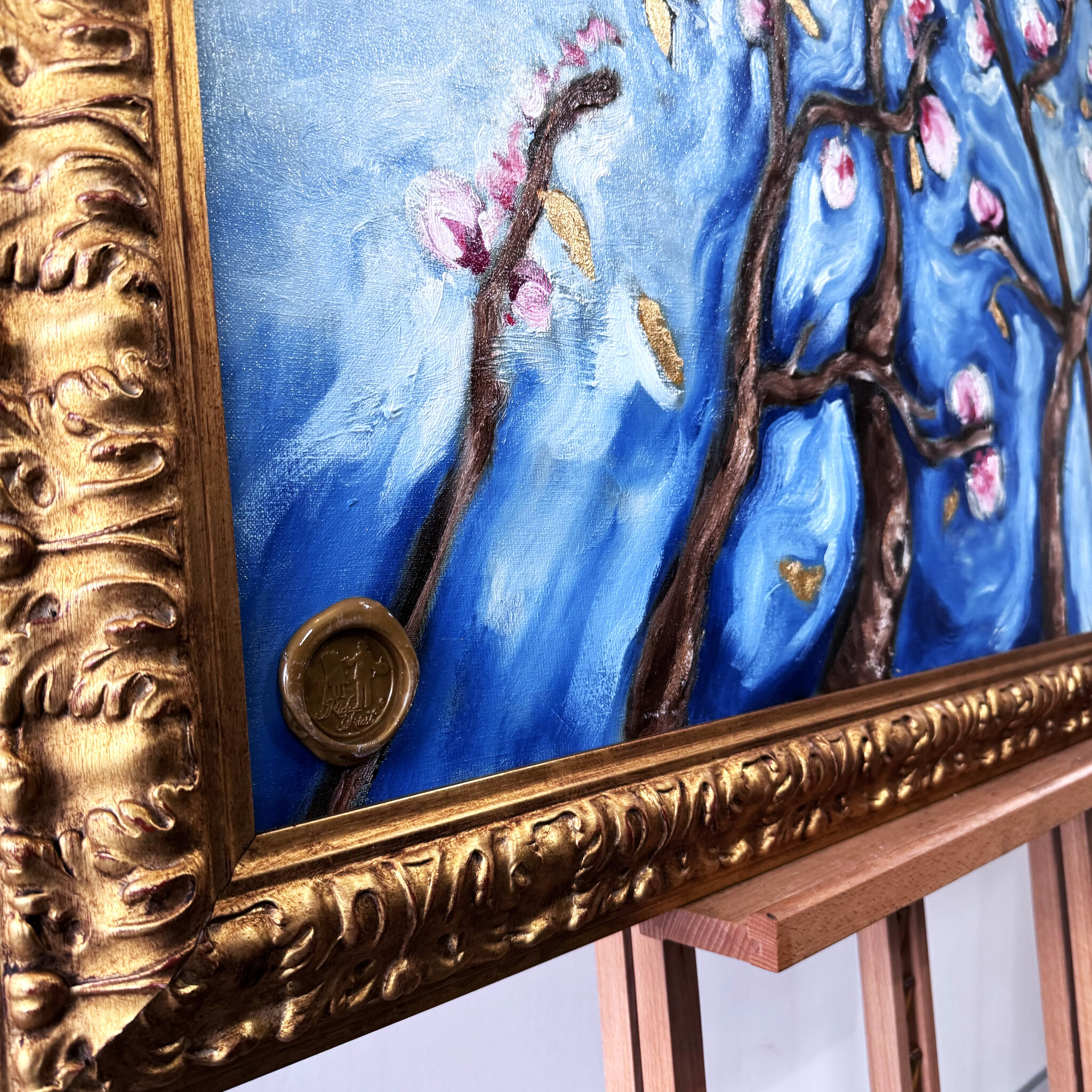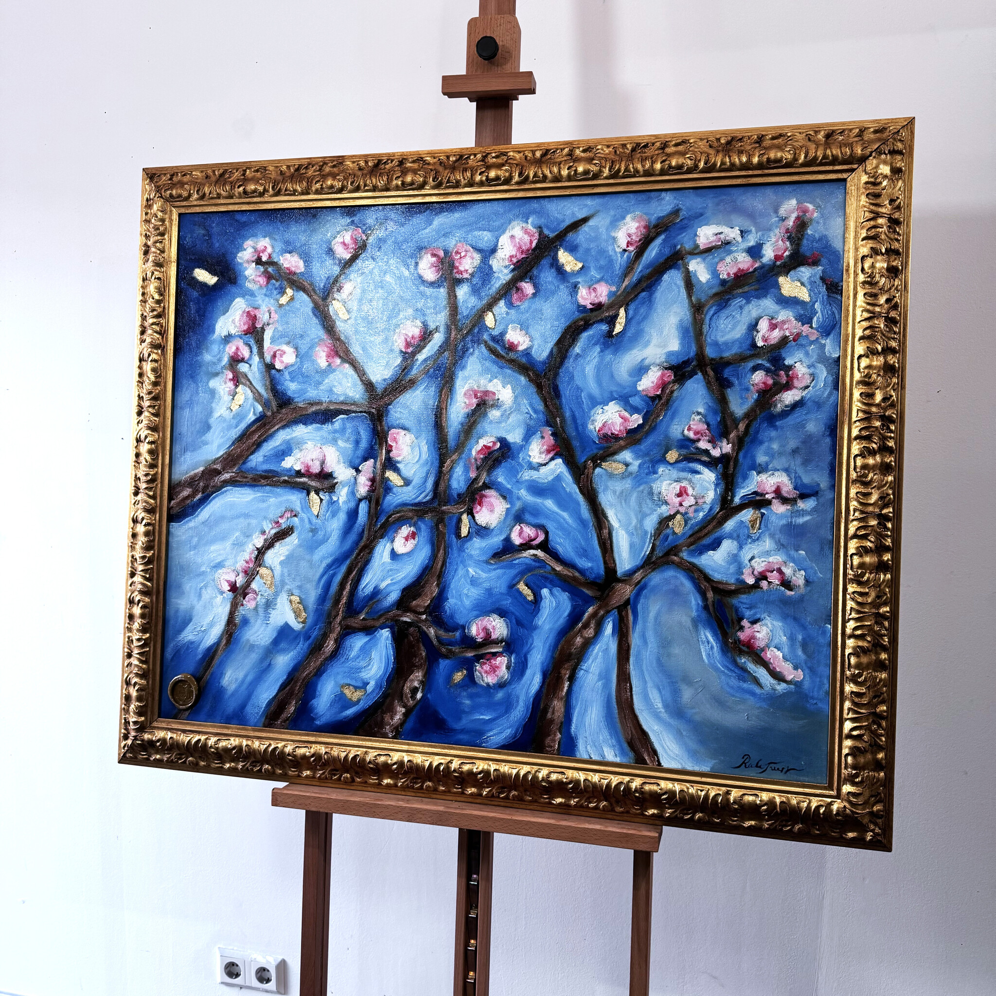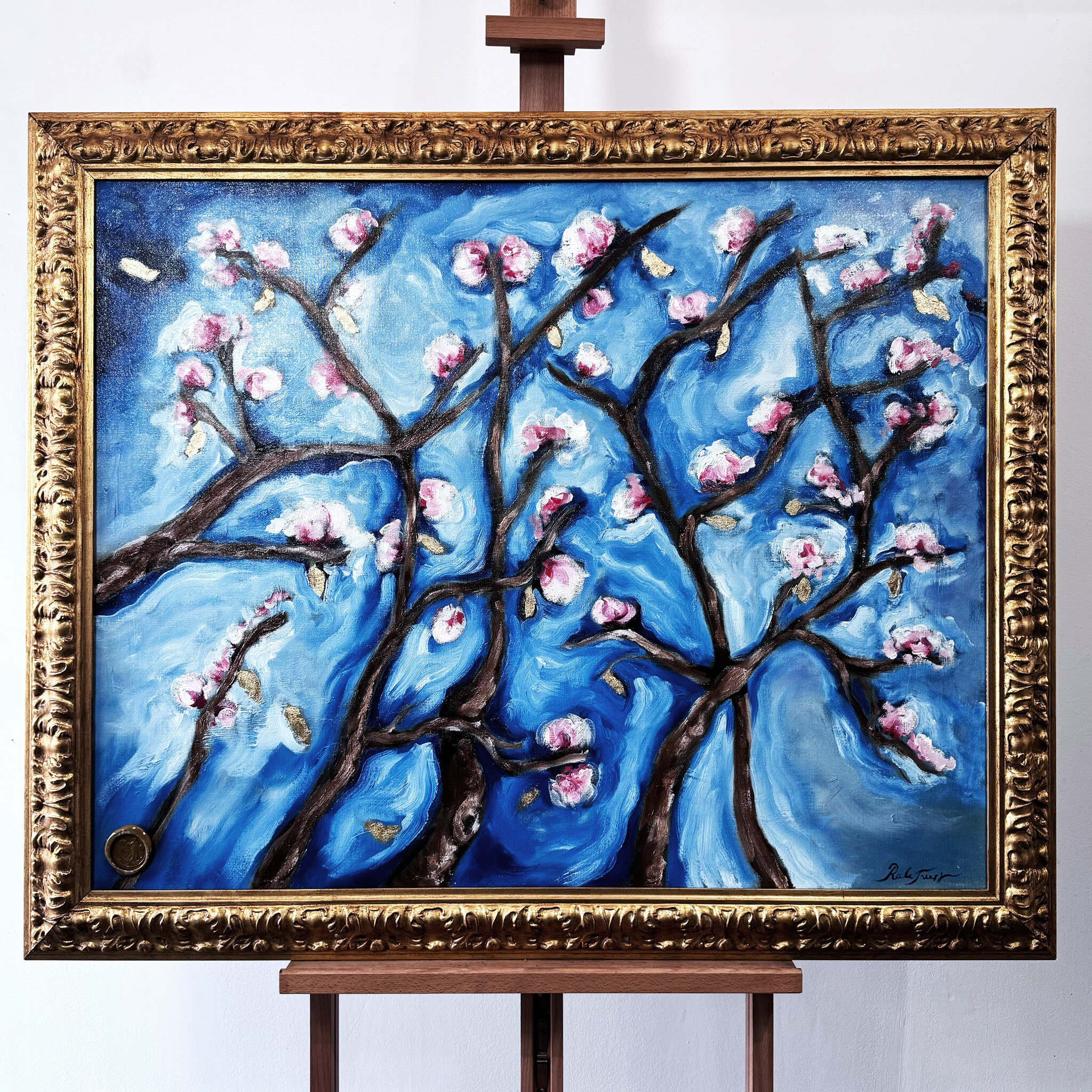Olieverf schilderij- 80x100 cm - Amandelbloesem - Starry Night & pink - 6 - met lijst
