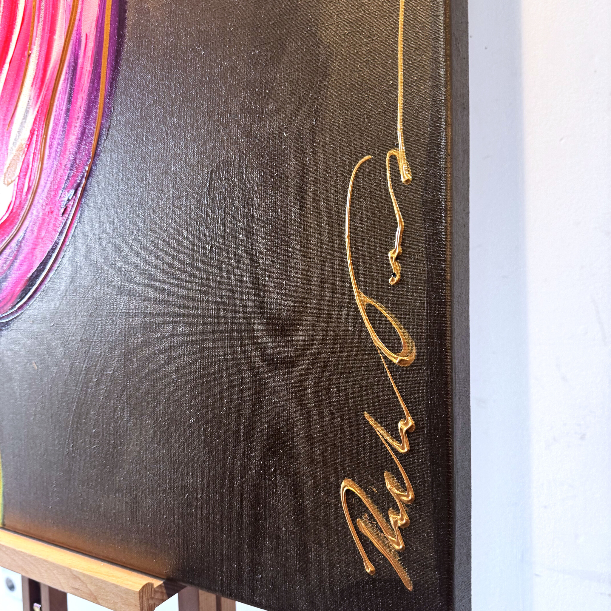 Rick bouwt de tulpen schilderijen op uit dikke lagen verf en werkt met een duidelijk handschrift wat zijn signatuur vormt. De dikke gouden lijn tekening waarmee zijn werk wordt afgemaakt doet de kijker al snel denken aan Amsterdam & Nederland in de gouden eeuw.