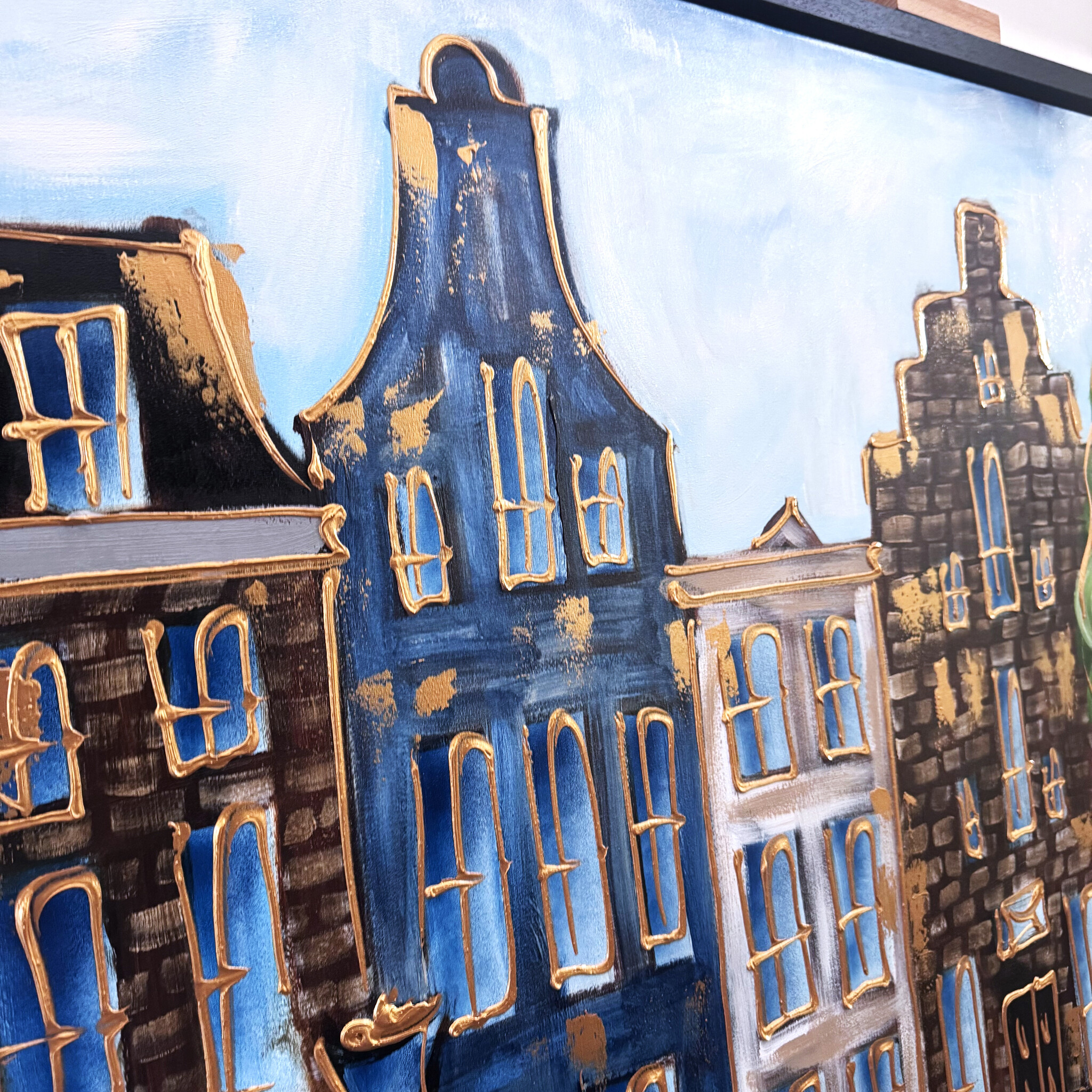 Schilderij- 100x150cm - Amsterdam Herengracht -Blue & Gold #304