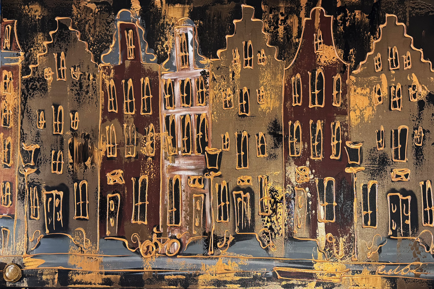 • Schilderij- 100x150cm - Rick Triest - Amsterdam LUXURY style - grachten gevels in omber & Gold #17