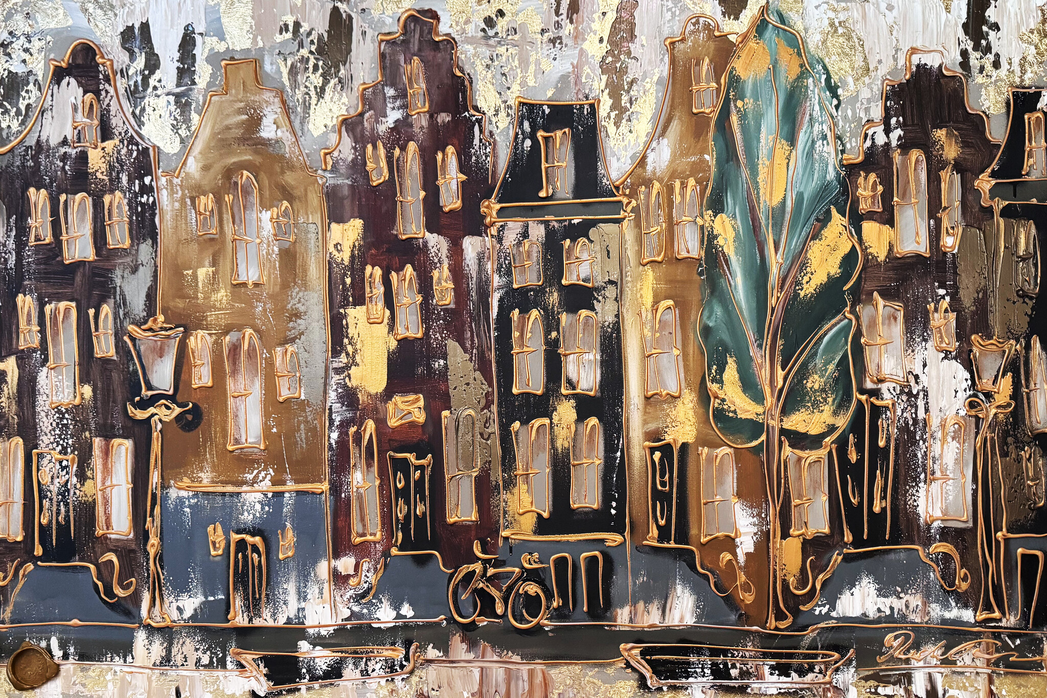 • Schilderij- 100x150cm - Rick Triest - Amsterdam LUXURY style - grachten gevels in omber & Gold #29