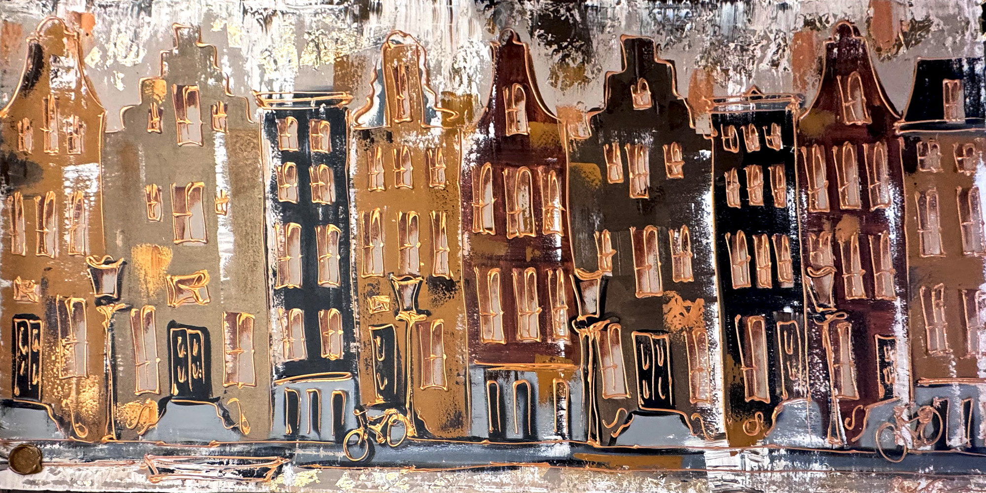 • Schilderij- 100x200cm - Amsterdam LUXURY style - grachten gevels in omber & Gold #7