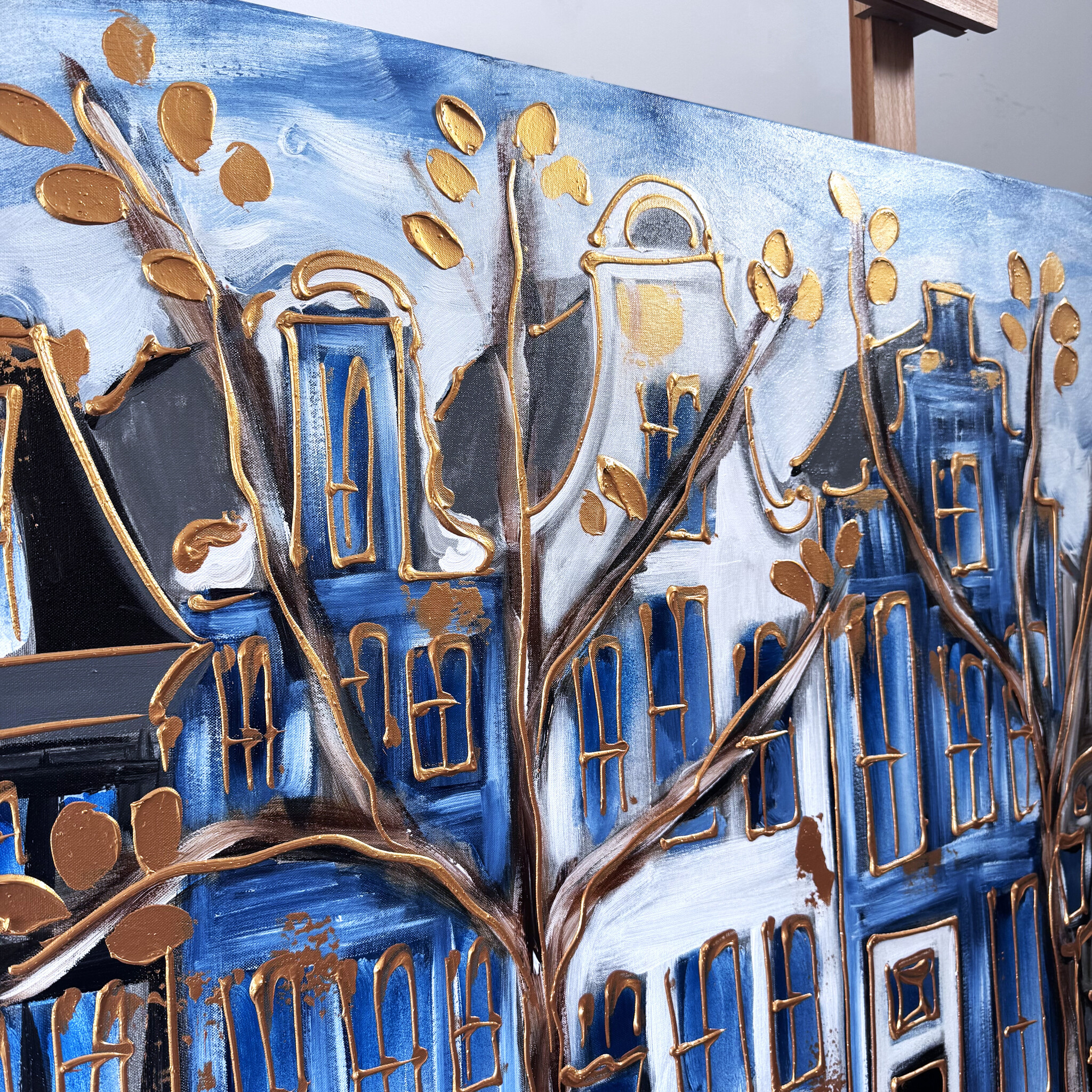 • Schilderij- 120x150cm - Rick Triest - Amsterdam Prinsengracht - Blue & Gold #32
