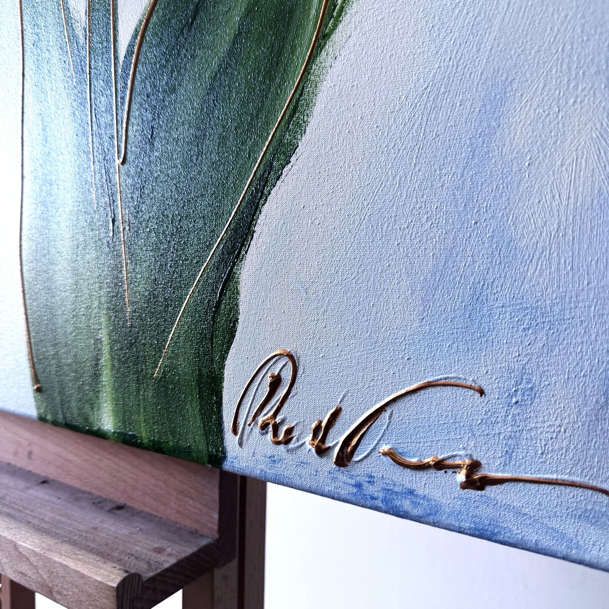 Artist Note: Mijn werken in de Serie Tulp Mania, zijn gemaakt in diverse lagen acryl verf, geïnspireerd op de glacis techniek van Rembrandt. Ook zo zichtbaar is de frottis techniek van de droge kwast in combinatie met in Parijs gekocht oliepastels van Sennelier. Ook is de vrije tekenstijl van de tulpen, die ik opzet met houtskool, zeer kenmerkend. Elke laag van het werk ligt bloot door deze gemengde technieken.