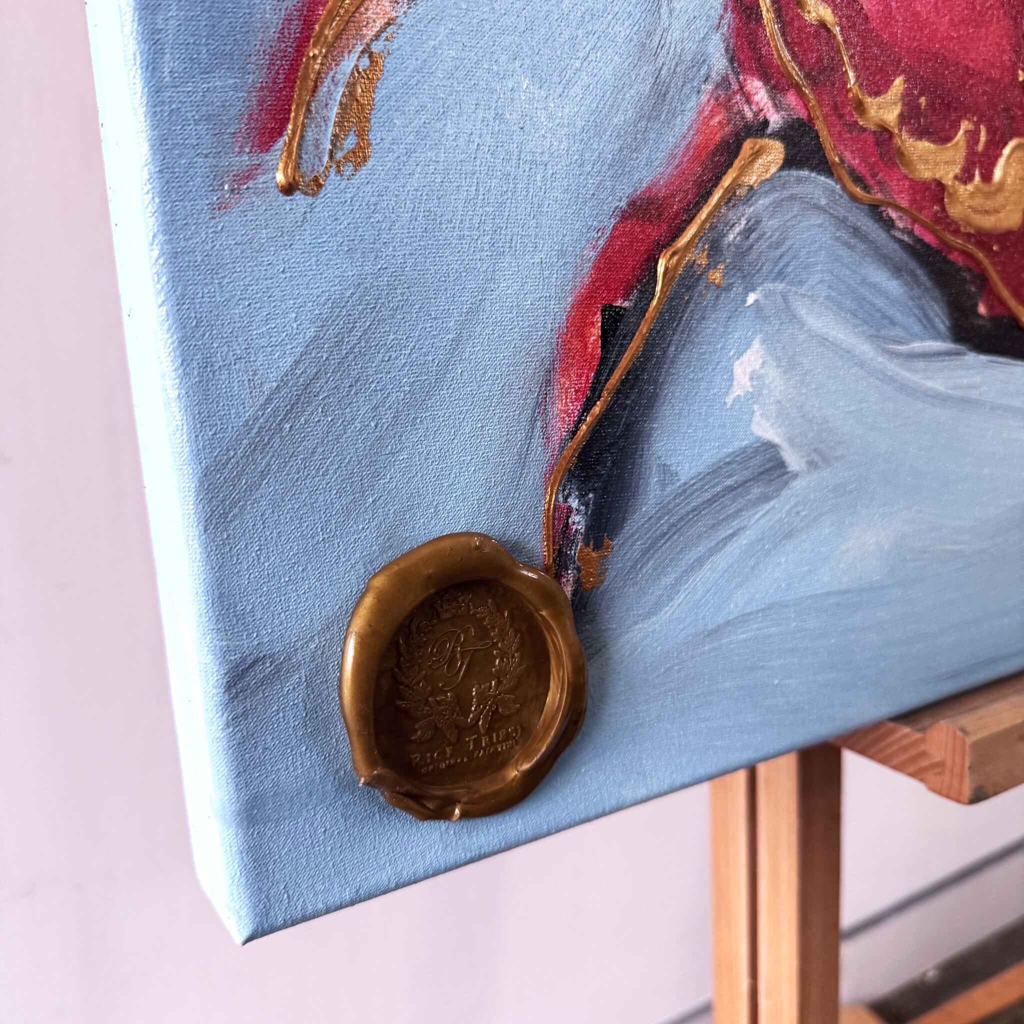 Schilderijen van Rick Triest zijn gesigneerd en voorzien van een handgemaakt lakzegel. Tevens zijn de werken van Rick afgewerkt met een vernis laag.