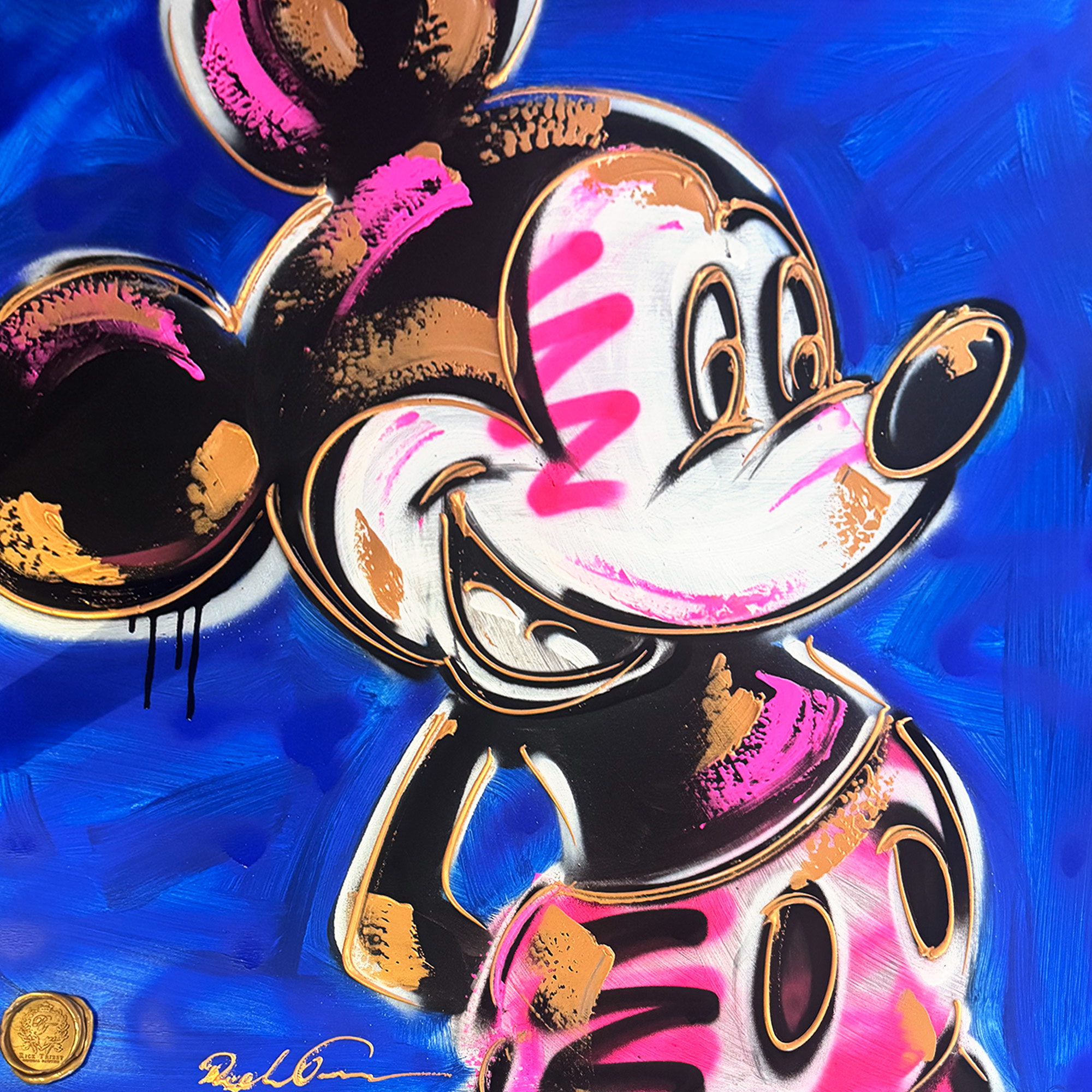 De werken van Rick Triest brengen een verrassende samensmelting van popcultuur en jeugdsentiment. In deze serie krijgt het iconische figuur van Mickey Mouse een geheel nieuwe dimensie, uitgevoerd in karakteristiek kleurgebruik en vertaald naar een hedendaagse, krachtige beeldtaal.