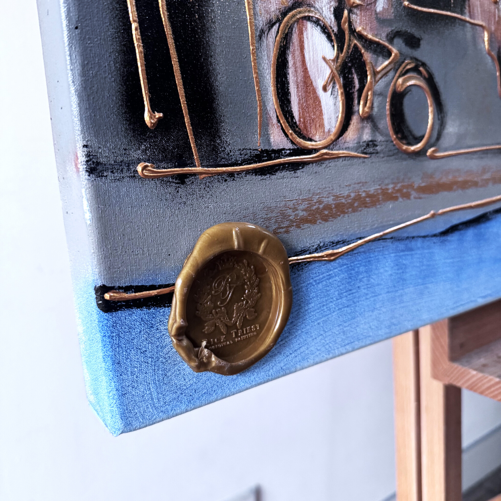 Schilderijen van Rick Triest zijn gesigneerd en voorzien van een handgemaakt lakzegel. Tevens zijn de werken van Rick afgewerkt met een vernis laag.