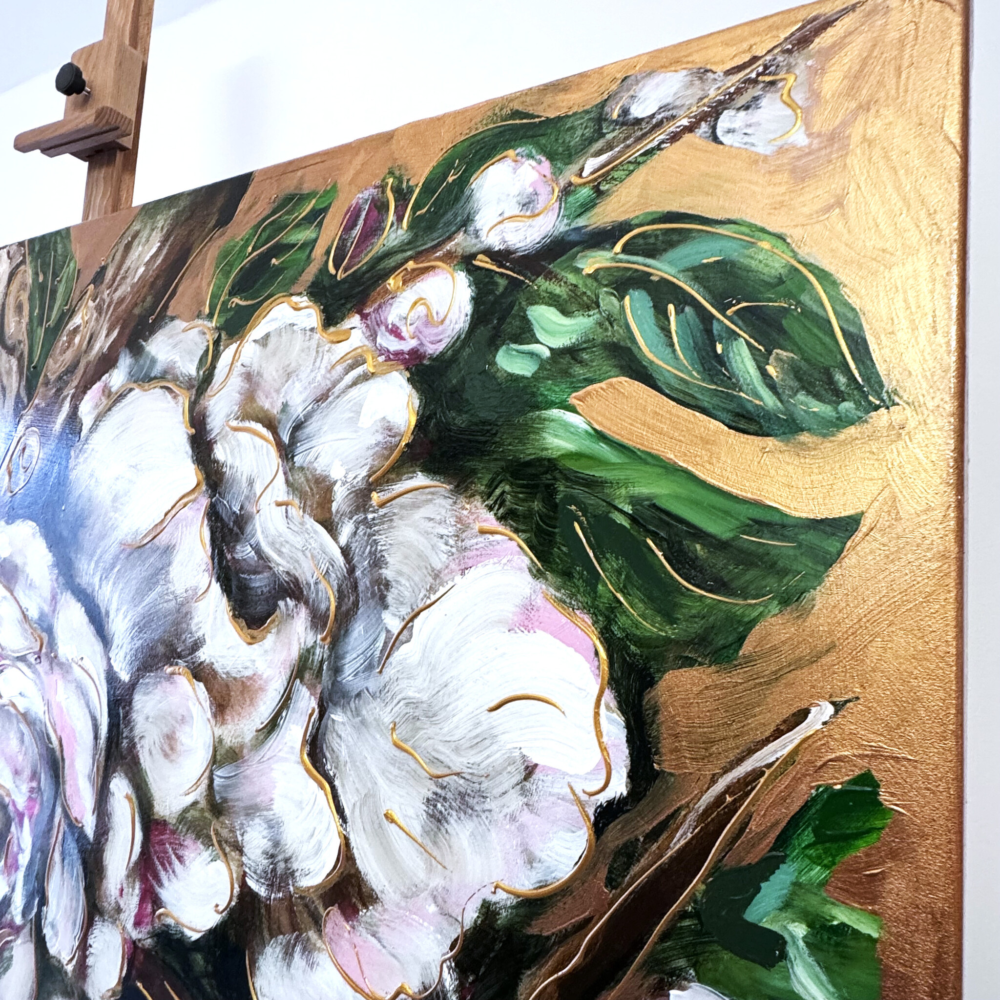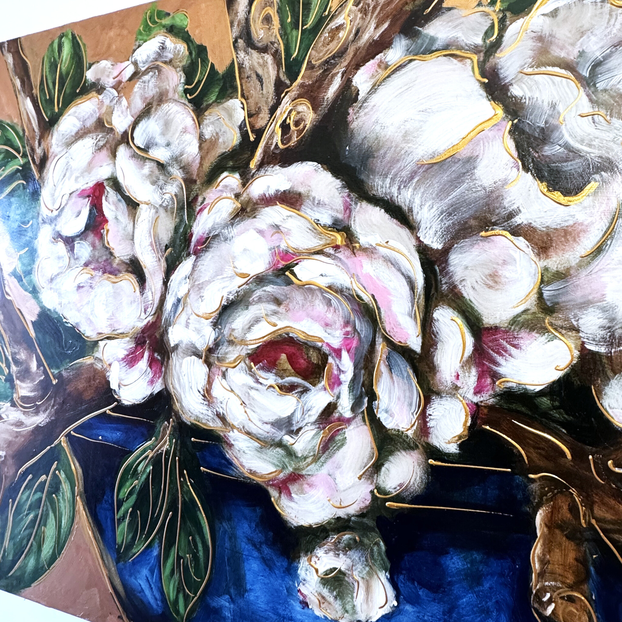 Schilderij -Rick Triest - Luxury Flowers - pioenrozen in pot - XL