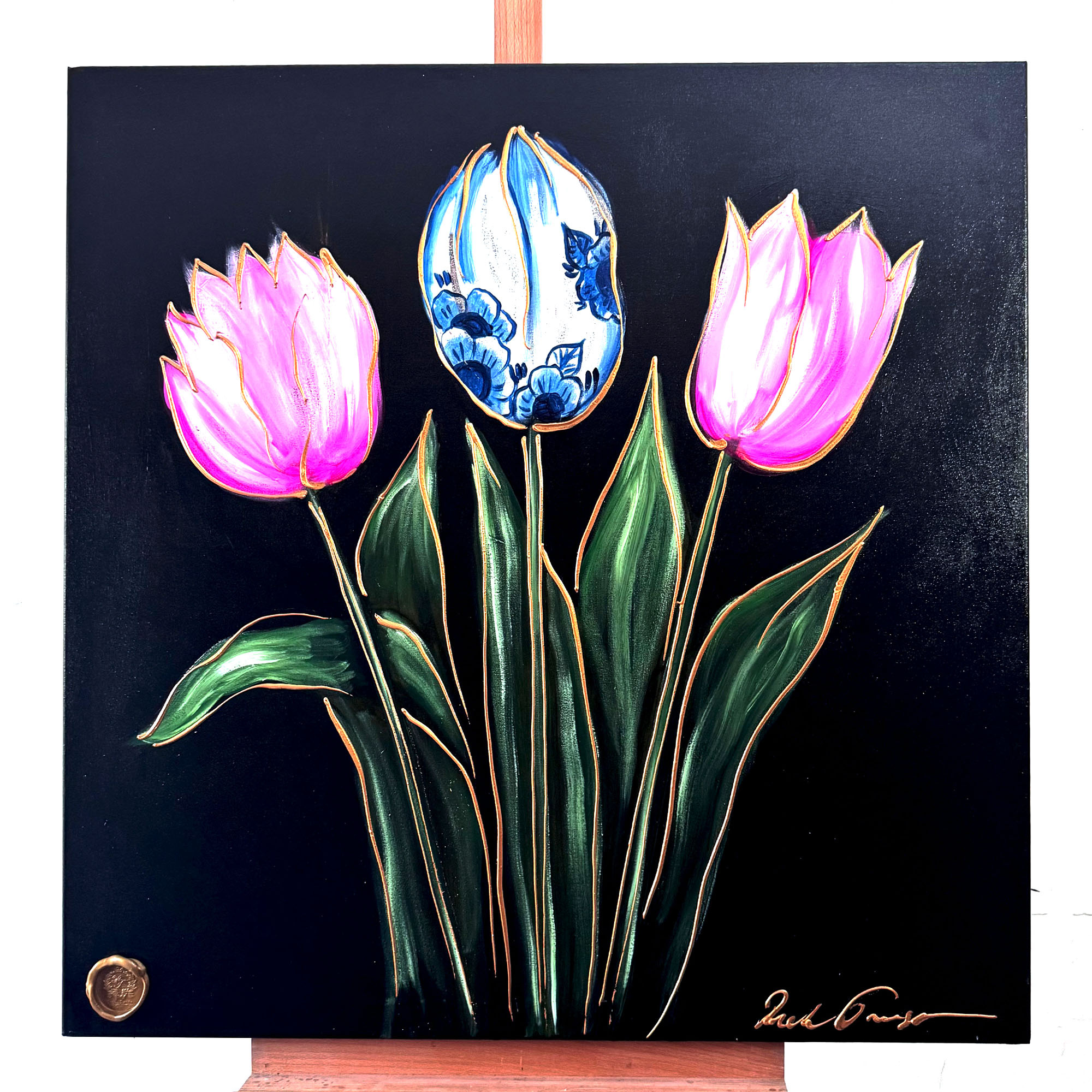 Schilderijen van Rick Triest zijn gesigneerd en voorzien van een handgemaakt lakzegel. Tevens zijn de werken van Rick afgewerkt met een vernis laag.